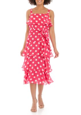 Danny Nicole Tiered Chiffon Dot Capelet Straps Midi Dress Belk